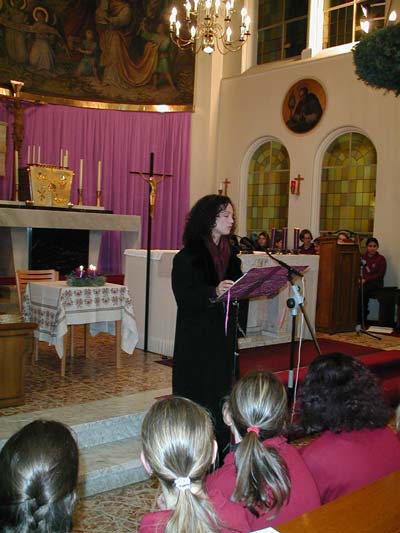 Der Absolventenverband hat Barbara Wussow, eine ehrmalige Schülerin von Maria Regina, zur Lesung von Weihnachtsgeschichten im Rahmen des Chorkonzertes eingeladen und hat sich sehr über ihre Zusage gefreut, wie man beim Dank und der Gratulation auf den Fotos sieht.
